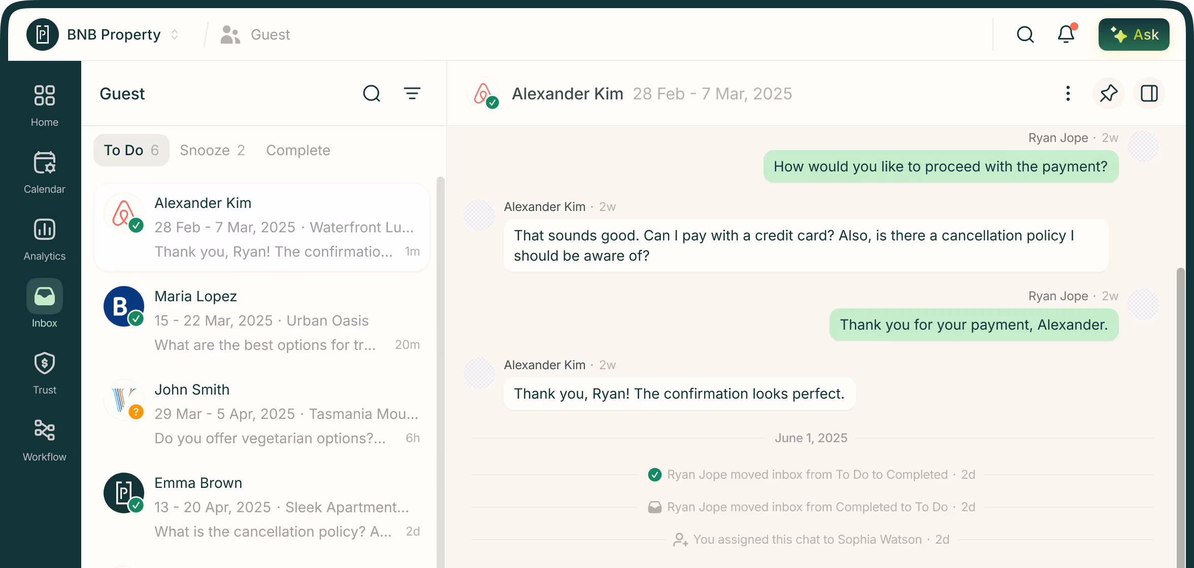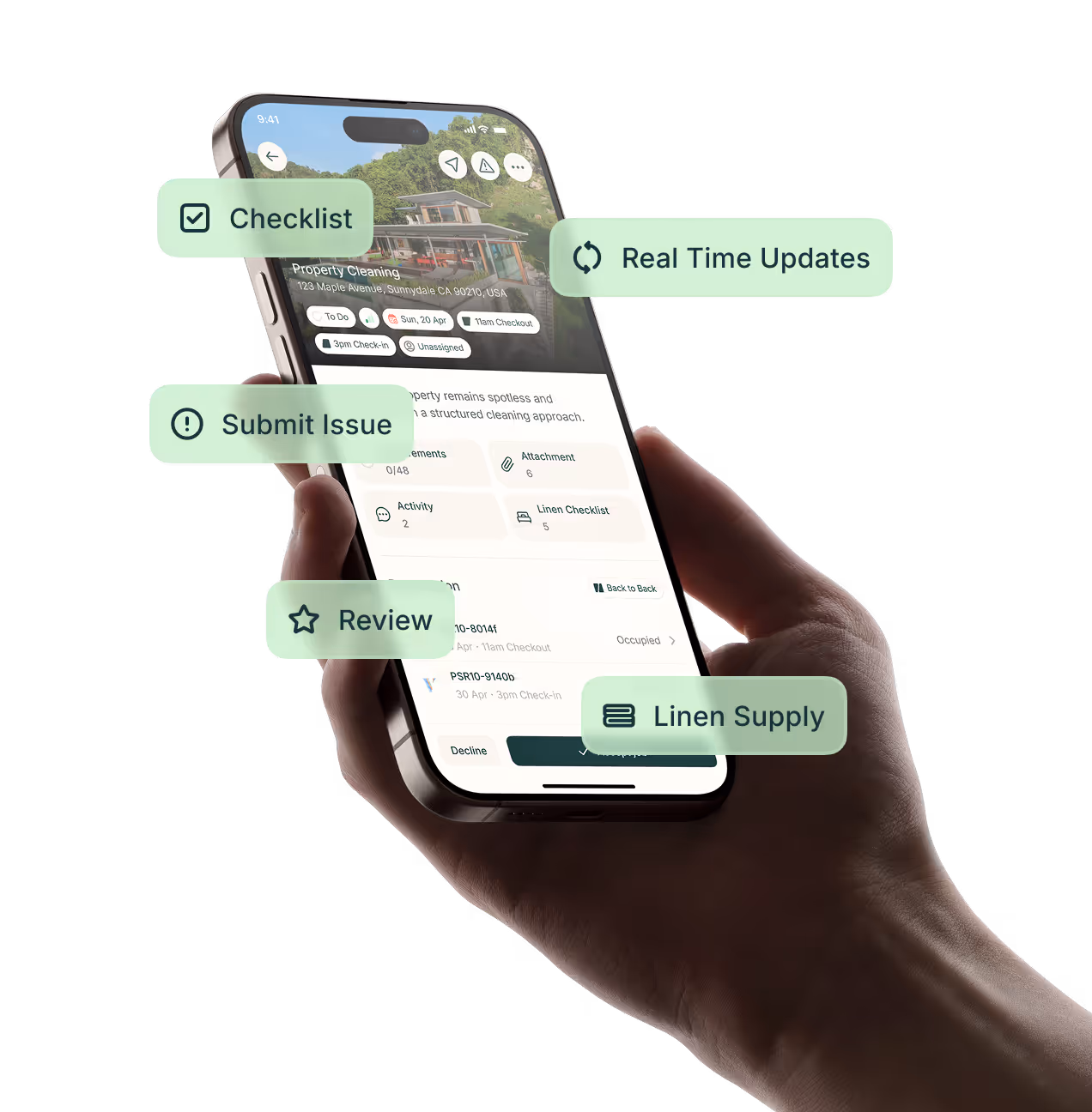 Keep Properties guest-ready by scheduling, tracking, and managing all maintenance, cleaning tasks.