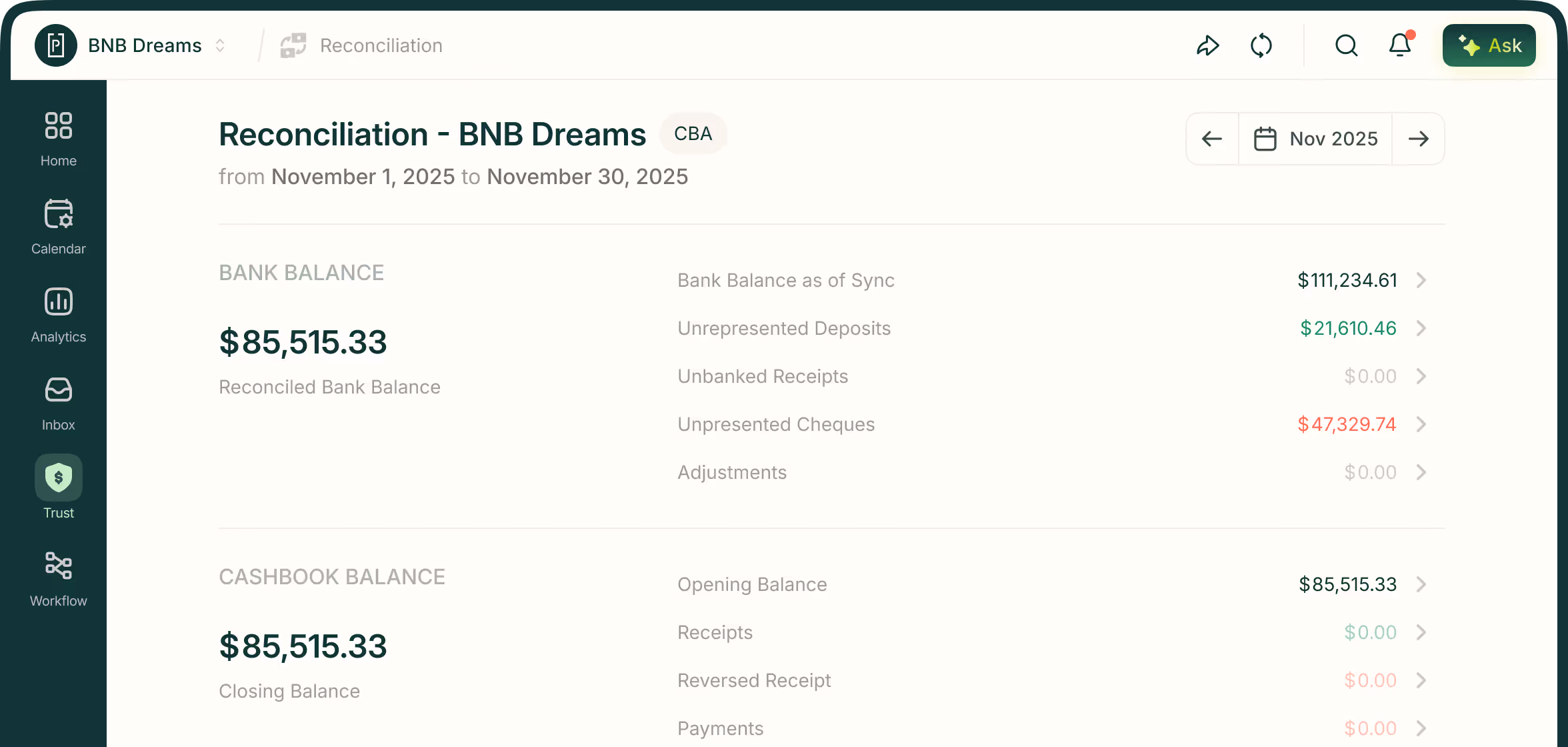 saved monthly on reconciliation