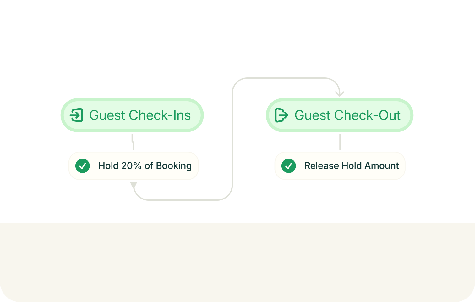 Automate payment collection, security holds, and owner payouts, no more chasing, disbursing, or reconciling manually.