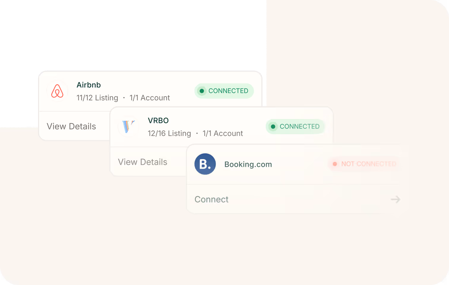 Manage listings on Airbnb, Booking.com, VRBO, and more, all from one place, with full control over pricing and availability.